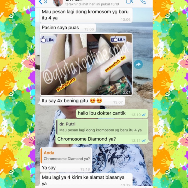 Ternyata rahasia dari kulit tersebut adalah melakukan infus kromosom. Suntik kromosom pernah booming ketika para artis mengaku menjalani prosedur ini agar kulit mereka tampak lebih putih dan cerahOrang pun berbondong-bondong melakukan hal yang sama tak peduli prosedur kecantikan yang satu ini memakan biaya yang sangat mahal bahkan hingga puluhan juta rupiah sekali suntik. Jual beli online aman dan nyaman hanya di Tokopedia.