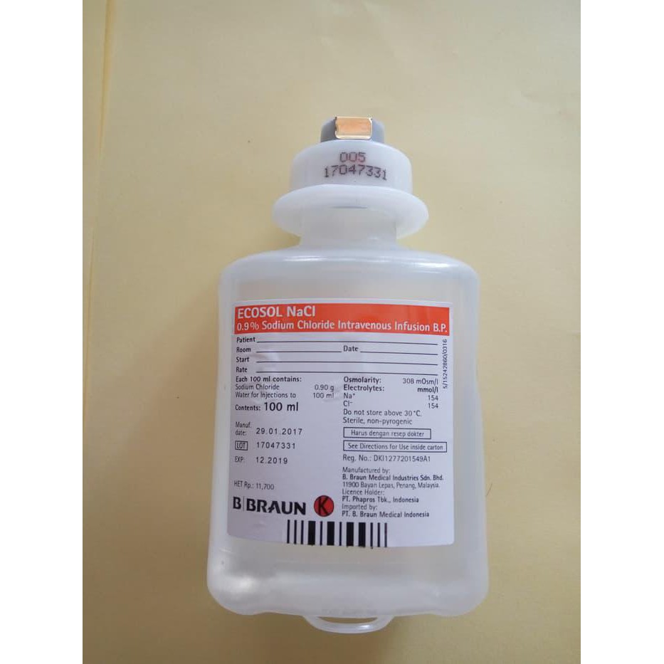 Umumnya dosis NaCl tergantung pada tujuan penggunaan obat itu sendiri. NaCL merupakan cairan isotonic yang digunakan sebagai pemula untuk resusitasi cairan pada paisen dehidrasi dan syok. Jual NACL 09 100ML CAIRAN NATRIUM CHLORIDA 09 KOMPRES CAIRAN INFUS dengan harga Rp11000 dari toko online PTC Chemical Equipment Kota Depok.