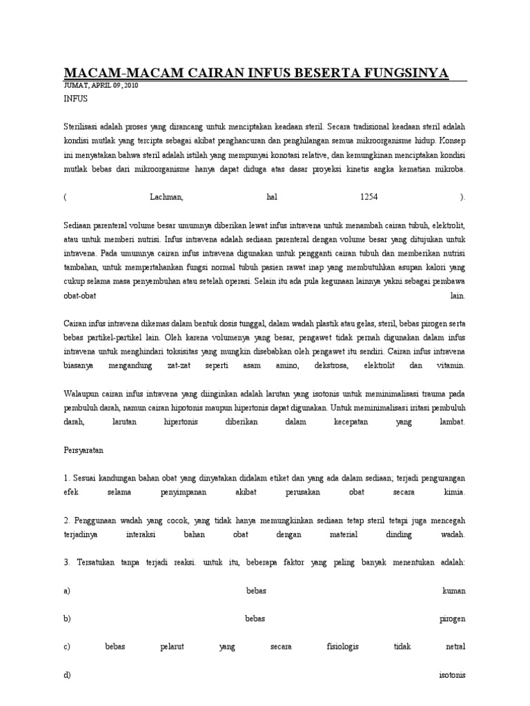 Jenis Jenis Cairan Infus Dan Fungsinya