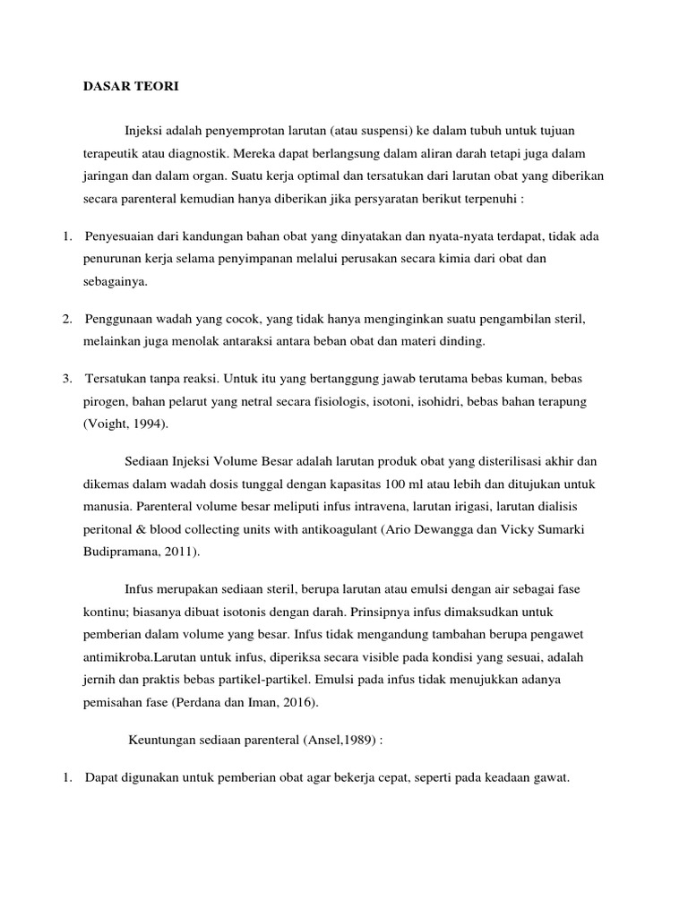 Selain sediaan oral obat ini juga tersedia dalam bentuk injeksi. Terapi intravena adalah tindakan yang dilakukan dengan cara memasukkan cairan elektrolit obat intravena dan nutrisi parenteral ke dalam tubuh melalui. Cairan infus atau kita sebut cairan intravena juga dikenal sebagai larutan intravena adalah cairan tambahan yang digunakan dalam terapi intravena untuk mengembalikan atau mempertahankan volume cairan normal dan keseimbangan elektrolit ketika rute oral tidak memungkinkan.